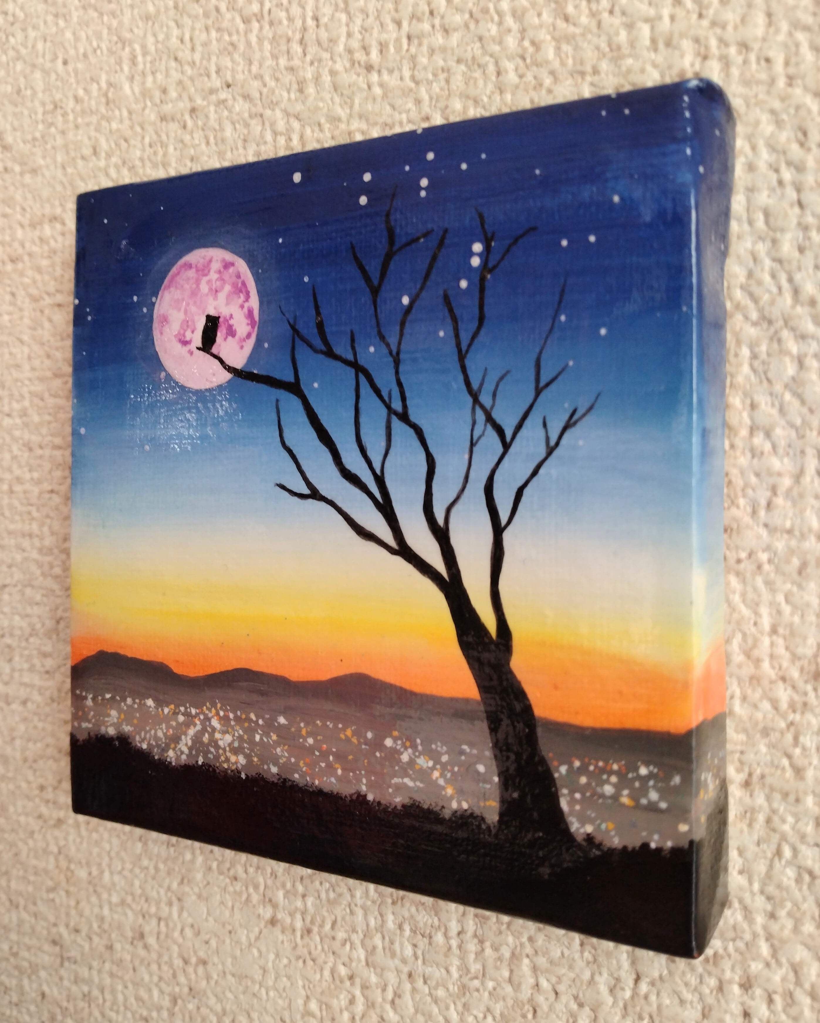 アクリル画 ミニキャンバス 夜の準備